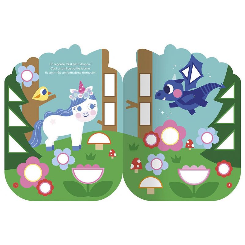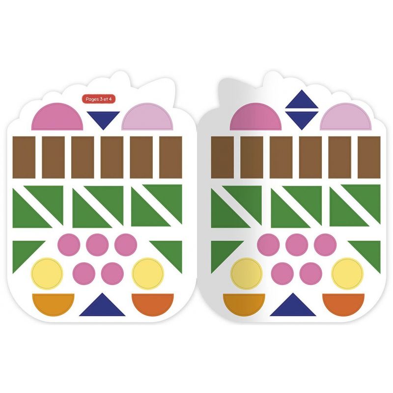Un cahier de plus de 300 gommettes de formes géométriques, qui servent à compléter lhistoire de petite licorne, à travers un cahier de décors détachable.