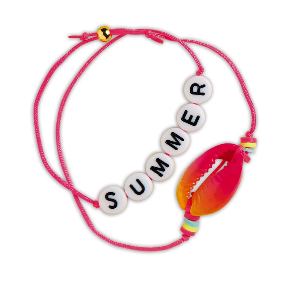 Les bijoux à messages, c’est un incontournable du moment ! Ce coffret créatif pour les enfants à partir de 6 ans, permet de réaliser ses propres bijoux de manière simple. Grâce à 300 perles heishi (perles plates fines) de couleurs, des perles lettres et d’autres accessoires, 2 bracelets, une broche et un collier peuvent être réalisés. Ils pourront comporter les mots ‘Summer’, ‘Love’, ‘Star’, et ‘Happy’. La jolie Boîte servira de Boîte à bijoux pour ranger les créations ! Ce kit contient 3 fils de couleur, 1 fil de nylon, 1 broche, 2 breloques (coquillage et étoile), 19 perles lettres, 280 perles heishi de couleurs différentes, 5 perles dorées, 2 anneaux (petit et moyen), 2 fermoirs et 1 livret explicatif.