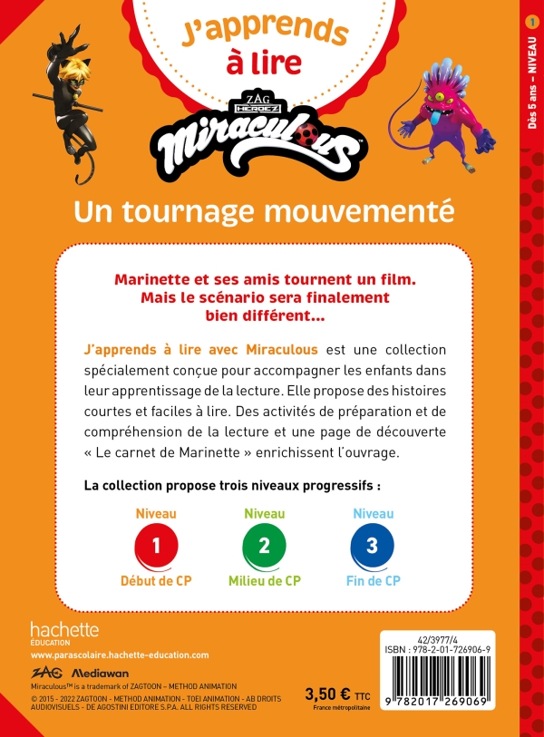 J’apprends à lire avec Miraculous est une collection spécialement conçue pour accompagner les enfants dans leur apprentissage de la lecture. Elle propose des histoires courtes et faciles à lire. Des activités de préparation et de compréhension de la lecture et une page de découverte « Le carnet de Marinette » enrichissent l’ouvrage.