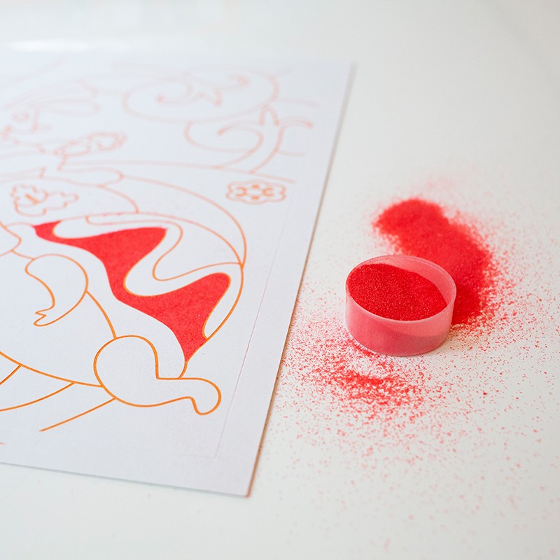 Il suffit de décoller les surfaces préencollées et de les saupoudrer avec les différents sables proposés. Couleur après couleur, chaque illustration prendra vie pour devenir un réel chef d’œuvre ! Un joli résultat est garanti pour les artistes de tout âge.